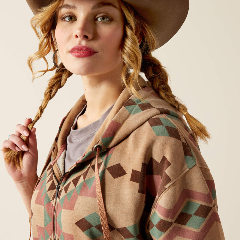 Sunset hues and a gorgeous Southwestern print are the centerpiece of this soft hoodie. The slightly cropped length adds a chic finish to any outfit, from your favorite leggings to your go-to denim and boots.