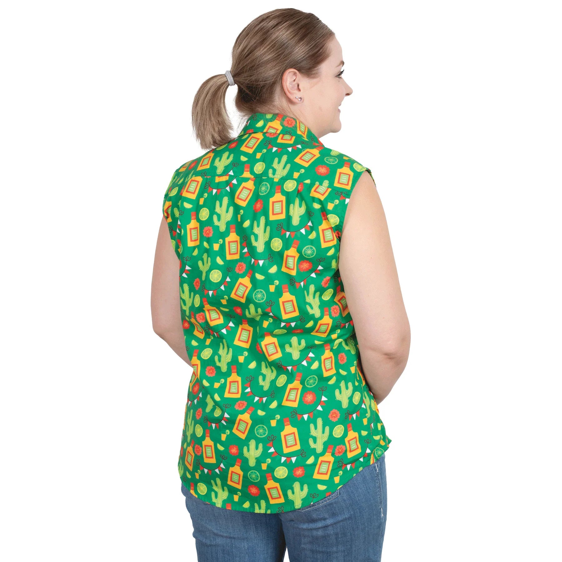 Just Country Women's - Lilly - 1/2 Button Sleeveless - Green Cactus