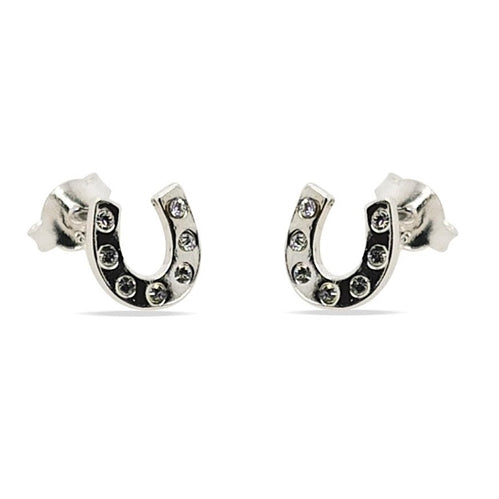 MCJ Sterling Silver CZ Horseshoes Studs Large
