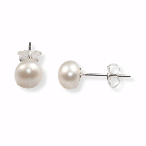 MCJ Sterling Silver freshwater Pearl 6mm Stud Earrings