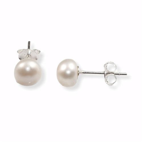 MCJ Sterling Silver freshwater Pearl 7mm Stud Earrings