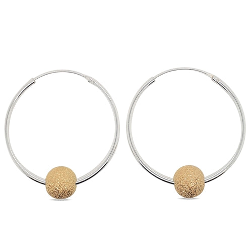 MCJ Sterling Silver Hoops Gold Plated Ball Dia Cut