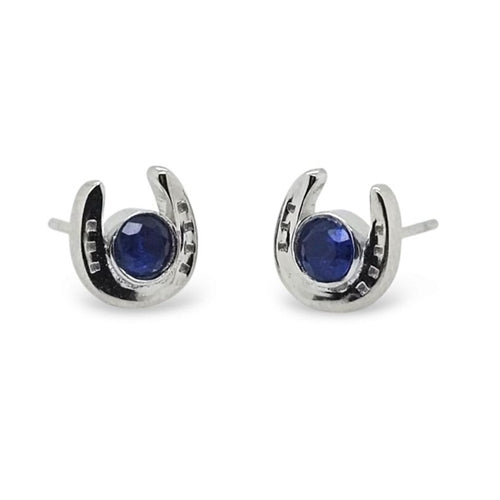 MCJ Sterling Silver Horseshoe CZ Stud Earrings - Blue