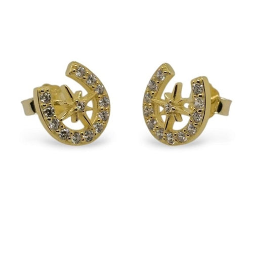 MCJ Sterling Silver Studs CZ Horseshoe N/Star Yellow gold plated