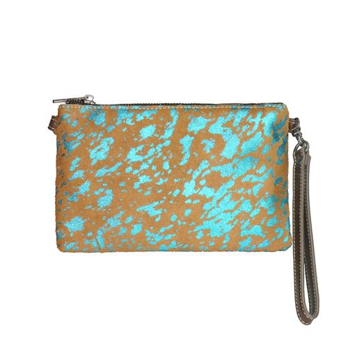 Montana Cowhide Leather Clutch/Crossbody - Aqua