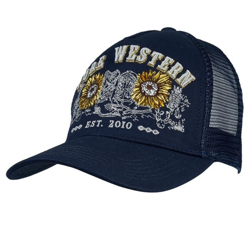 High profile 5 panel trucker cap, front 3D multi colour embroidery, Pure Western back embroidery