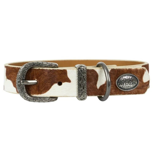 Tan and White cow hide print Dog Collar