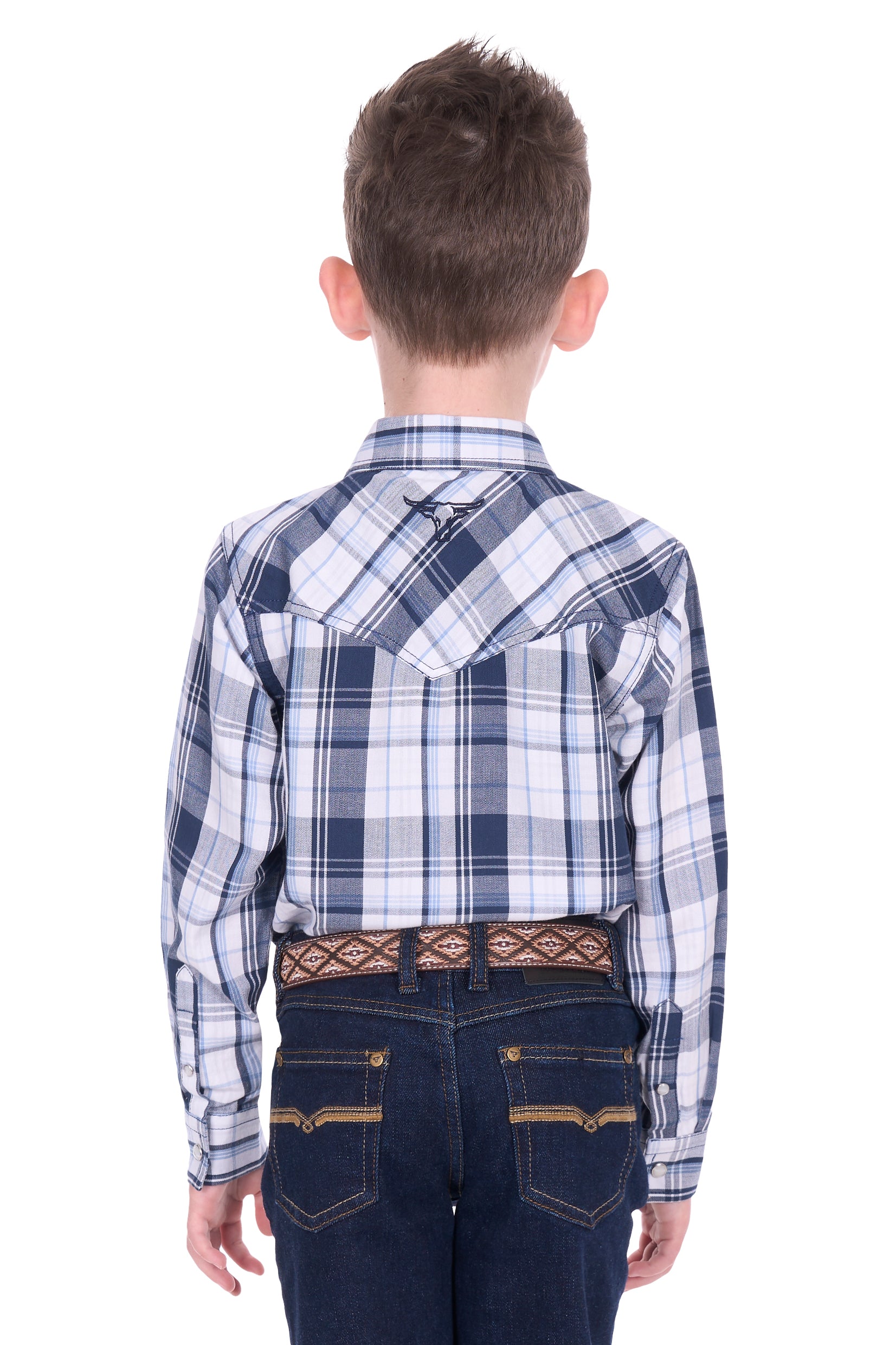 Pure Western Boy's Billy L/S Shirt - Navy/White
