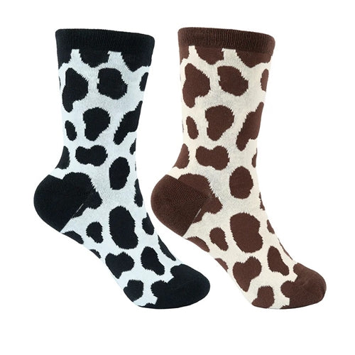 Pure Western Kids Crew Socks - Black/Tan Cow Print