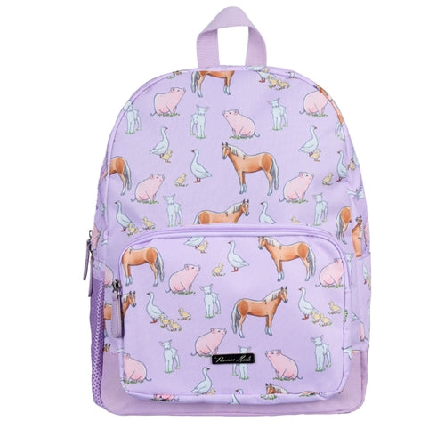 Original hand drawn multi colour print, front zip pocket, side mesh pocket, internal slip pocket, adjustable webbing straps, logo metal badge.