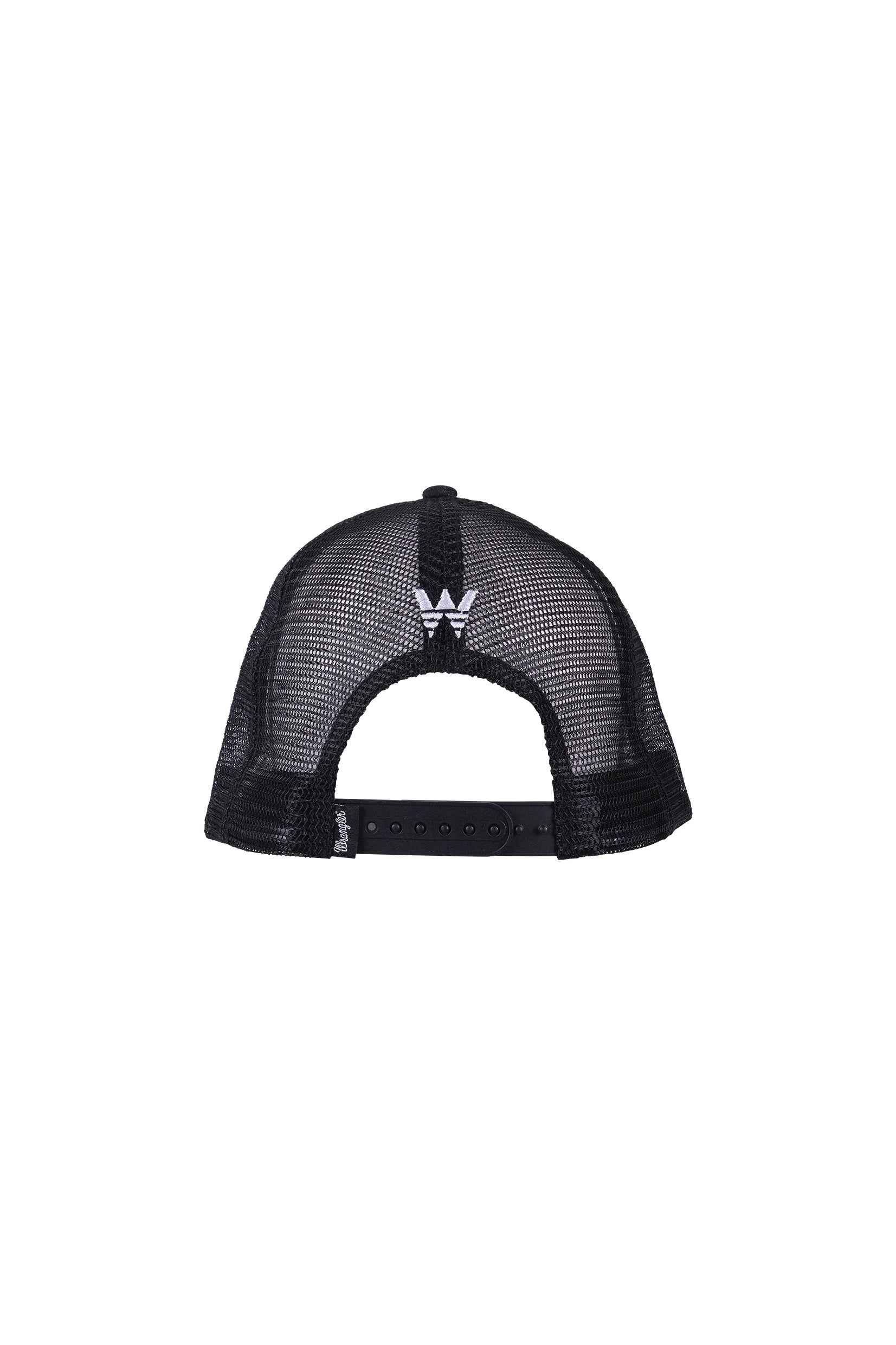 High profile 5 panel trucker cap, peak with tonal printed logo yardage, contrast sandwich peak, contrast crown piping