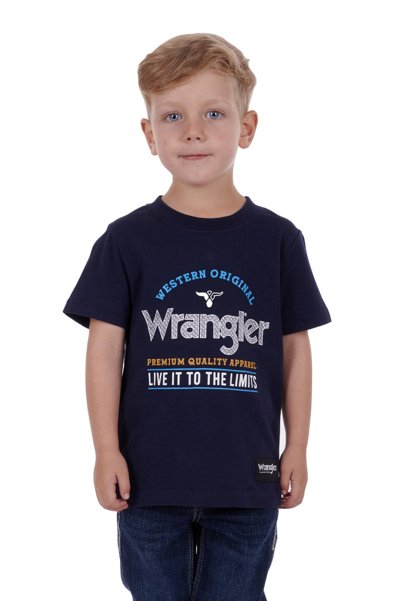 Classic short sleeve tee, large front feature Wrangler® iconic logo print, sleeve print, rib neck band