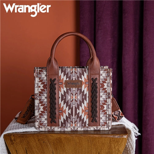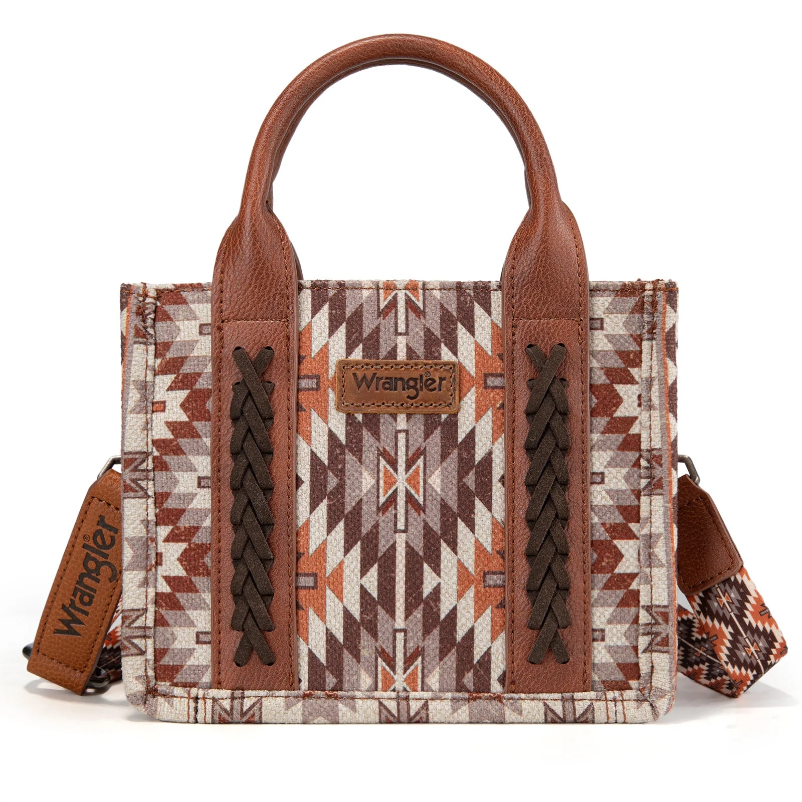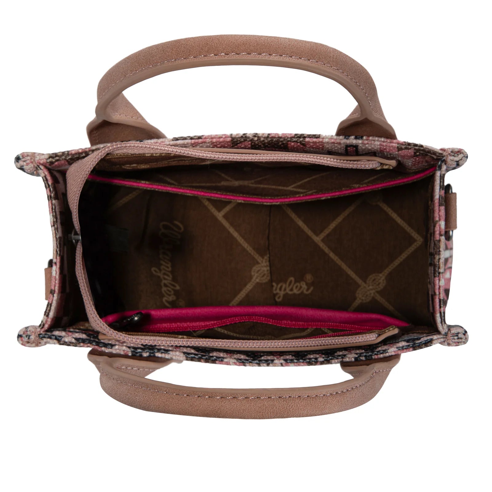 Wrangler Southwestern Pattern Dual Sided Print Mini Tote/Crossbody - Tan