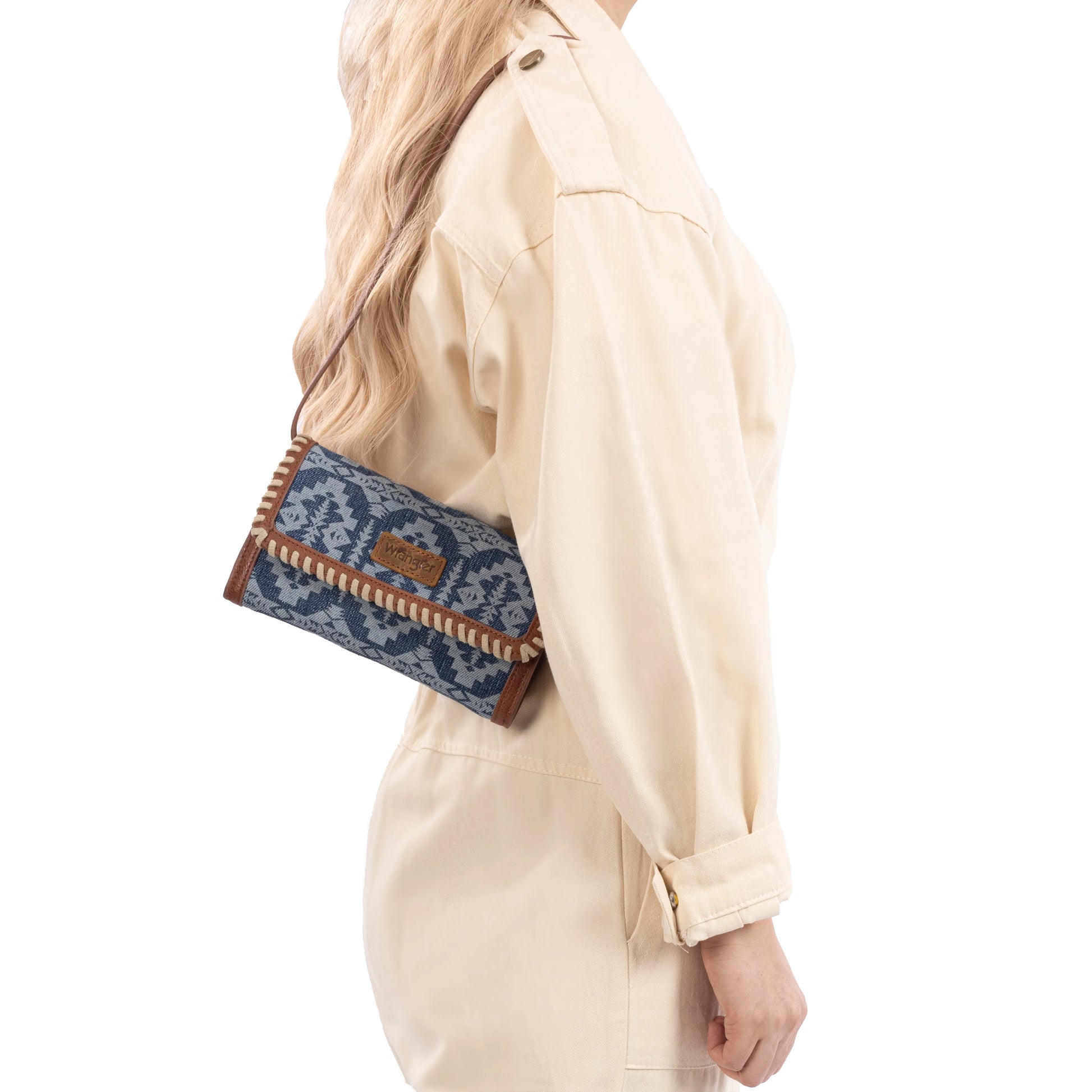 Wrangler Southwestern Print Wallet/Wristlet/Shoulder Bag - Jean