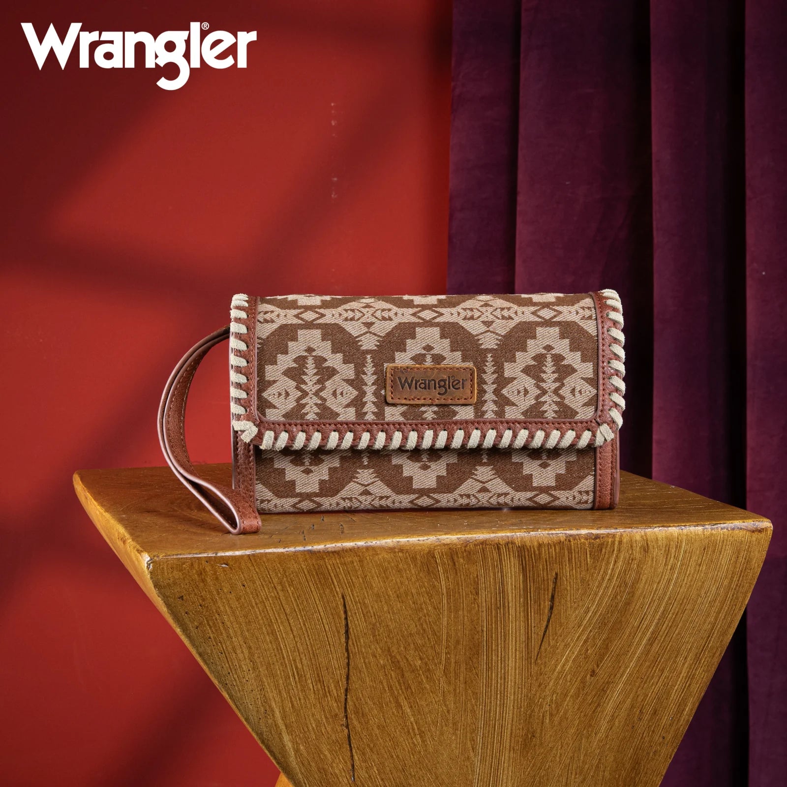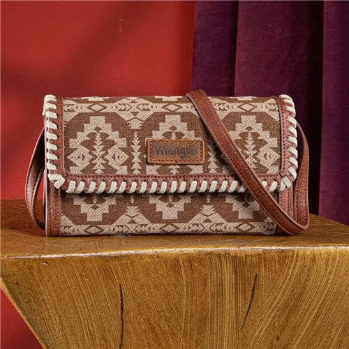 Wrangler Southwestern Print Wallet/Wristlet/Shoulder Bag - Tan